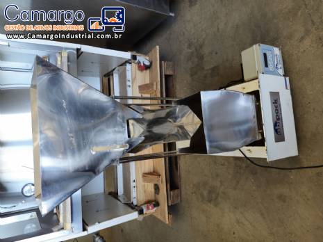 Pesadora dosadora empacotadora embaladora semi automática em aço inox.Fabricante / marca: Abipack. Modelo: BL 1030 G4.Pesagem dosagem por célula de carga sob a caçamba. Para pesar aproximadamente entre 1 g até 5 kg.Com variação de décimos de grama.